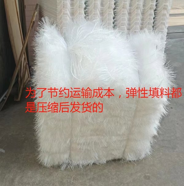 彈性填料采用高分子聚合物并加入抗氧劑、親水劑、穩(wěn)定劑、吸附劑等添加劑,經(jīng)特殊拉絲而成面帶有細(xì)小毛刺結(jié)構(gòu),彈性絲經(jīng)高溫黏合,牢牢固定在塑料粒子上,形成片距式彈性立體填料。填料耐腐蝕,比表面積大,易掛膜,周期性后脫膜容易,更新快。具有良好的布?xì)狻⒉妓阅堋?nbsp;